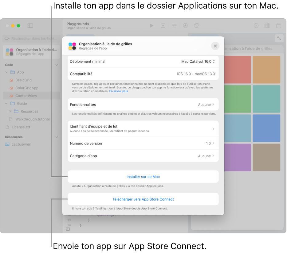 Envoyer une app sur App Store Connect ou l’installer sur son Mac