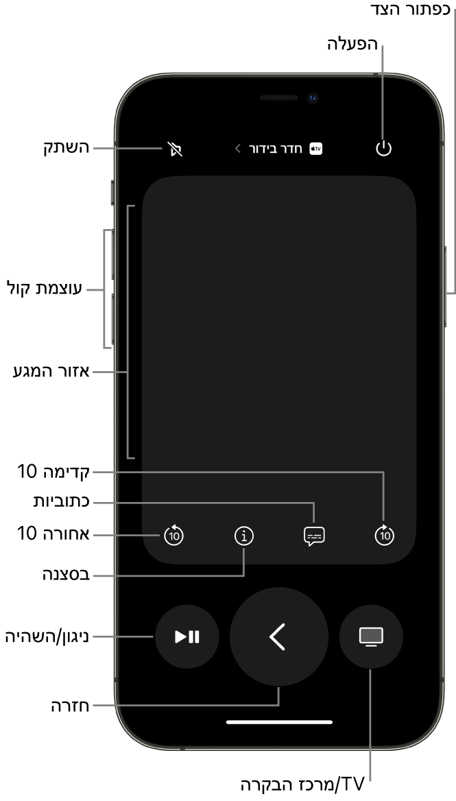 ב-iPhone או ב-iPad יש להשתמש באזור המגע ובכפתורים כדי לבצע את הפעולות הבאות: