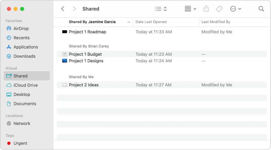 आप दूसरों के साथ फ़ाइलों और फ़ोल्डरों को शेयर करने के लिए iCloud Drive का उपयोग कर सकते हैं, ताकि प्रोजेक्ट पर एक साथ सहयोग कर सकें। जिन लोगों को आप आमंत्रित करते हैं, वे शेयर किए गए आइटम को iCloud से अपने किसी भी डिवाइस पर डाउनलोड कर सकते हैं, जहाँ वे उन्हें देख सकते हैं और आपके द्वारा सेट किए गए विशेषाधिकारों के आधार पर सहयोग कर सकते हैं। अगली बार जब आप अपने Mac पर फ़ाइलें खोलते हैं, तो हर एक अपडेट देख सकते हैं।