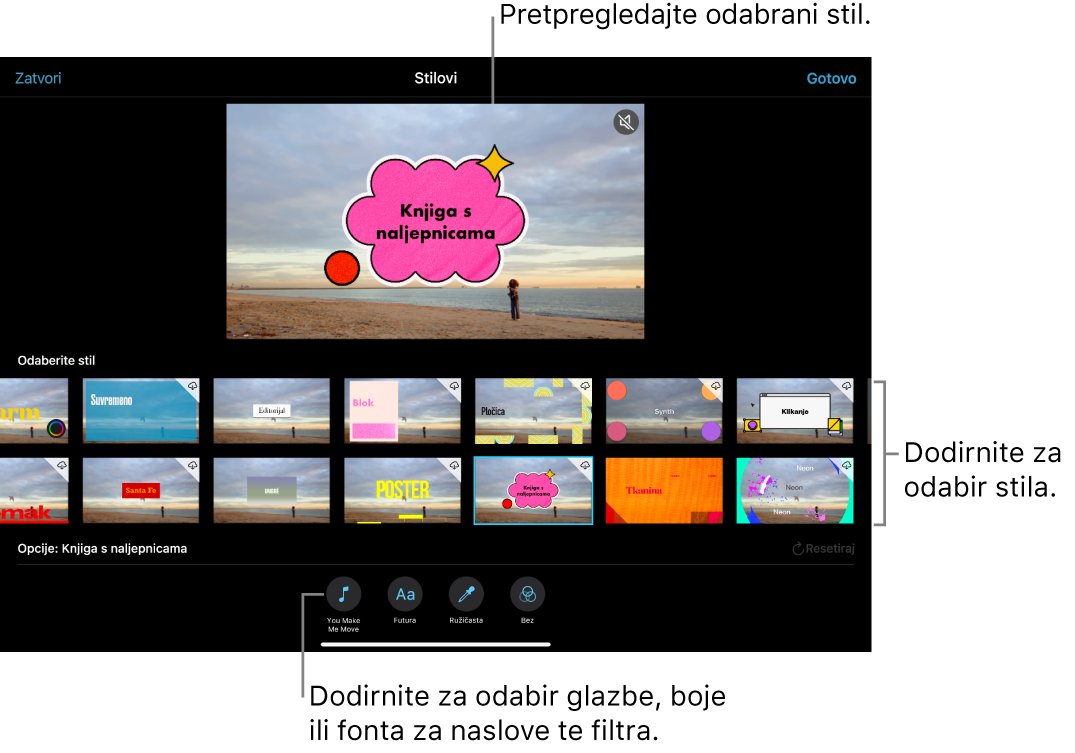 Kada odaberete stil koji želite koristiti, dodirnite Gotovo pri vrhu zaslona za primjenu stila vašem projektu.
