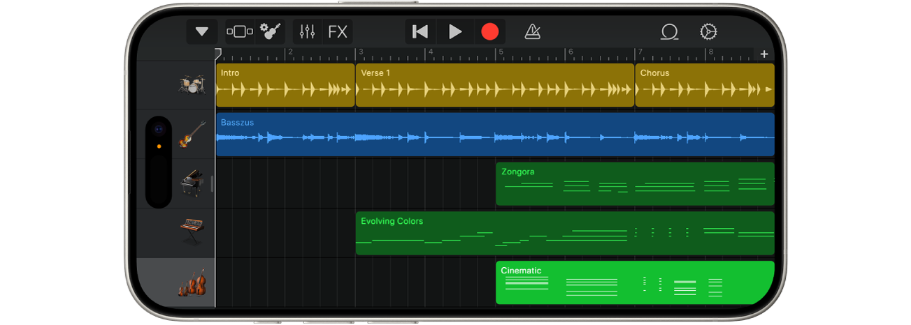 A Live Loops segítségével elektronikus zenét hozhat létre úgy, hogy egyszerűen csak a rács celláira és oszlopaira koppint a zenei loopok aktiválásához. Felépítheti a saját hangszerelését, majd improvizálhat és rögzítheti a Live Loops-előadást.
