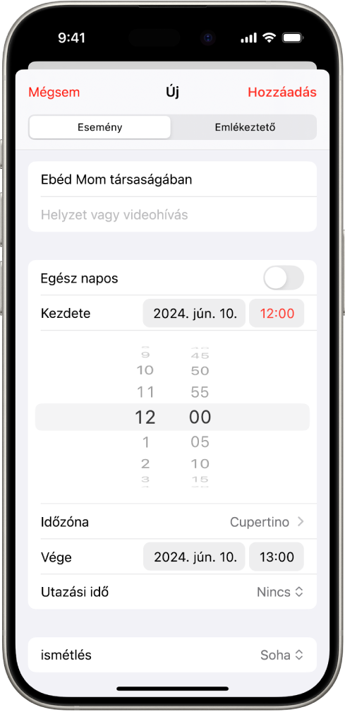 Események ütemezése vagy megjelenítése más időzónában az iPhone-on lévő Naptárban