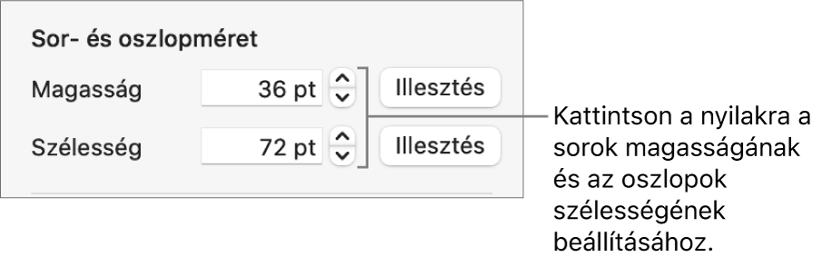Megjegyzés: Az egyes cellák szélességét vagy magasságát nem módosíthatja.