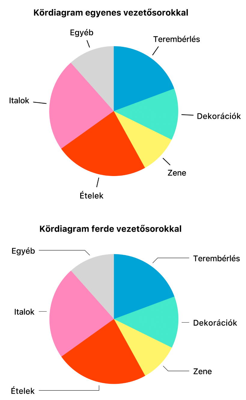 Címkék helyének módosítása: Húzza a címkék megjelenítési helyét a Távolság középről csúszka segítségével. Ha messzebb helyezi a címkéket a diagram közepétől, az segíthet szétválasztani az egymást átfedő címkéket.