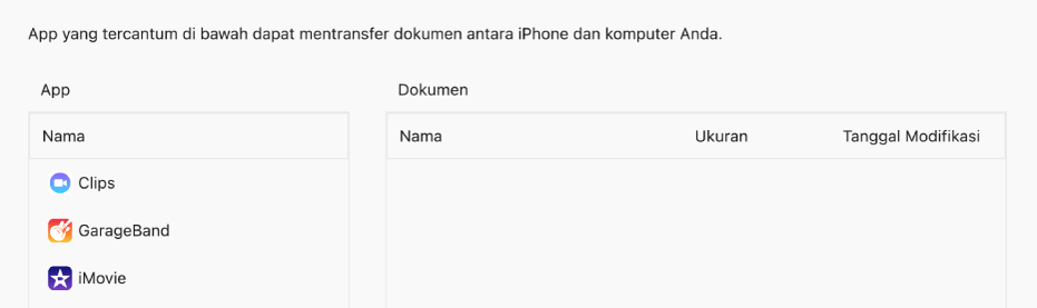 Pilih app dari daftar untuk melihat file yang telah ditransfer ke perangkat Anda.