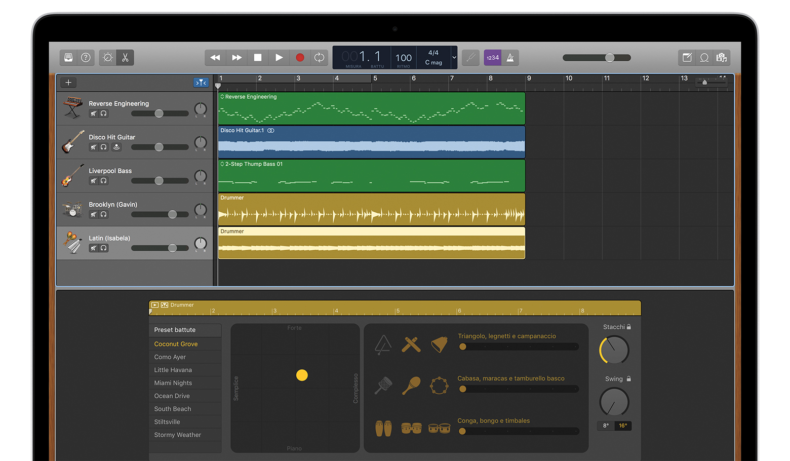 Uso delle percussioni in GarageBand per Mac