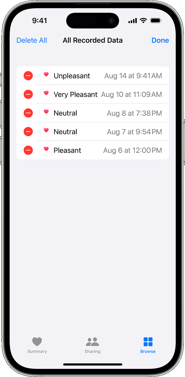 Se hai registrato in modo errato un umore o un'emozione o hai completato in modo impreciso una valutazione, puoi eliminarli.
