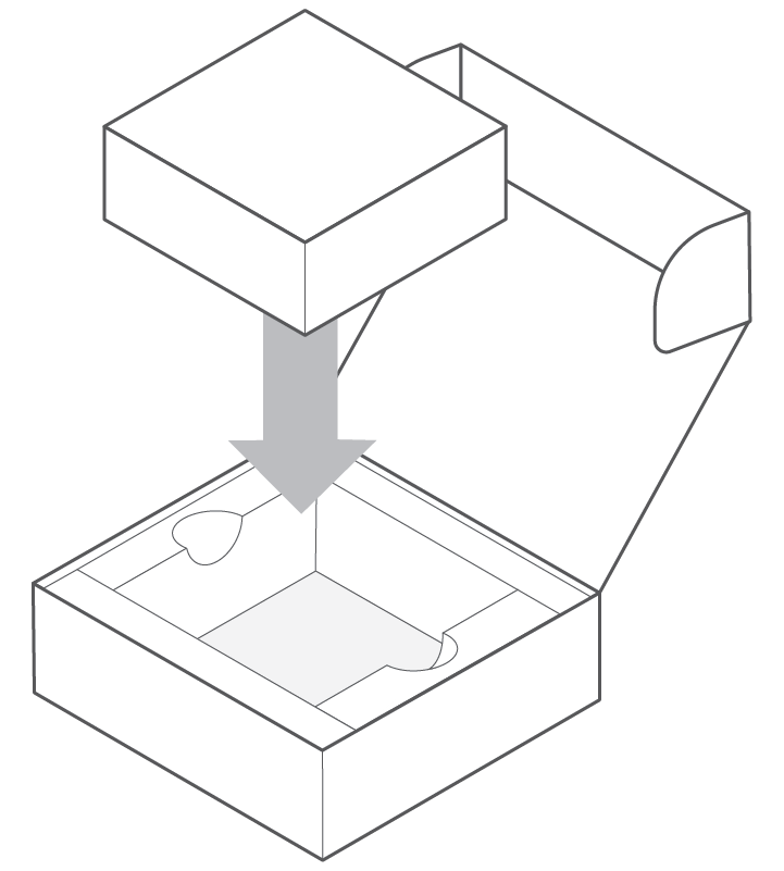 - Powerbeats Pro イヤーバッドを白い箱のトレイに置きます。アクセサリ (イヤーチップ、充電ケーブルなど) はイヤーバッドと同梱しないでください。その他のアイテムを同梱いただいても、ご返却いたしかねますので、ご了承ください。
