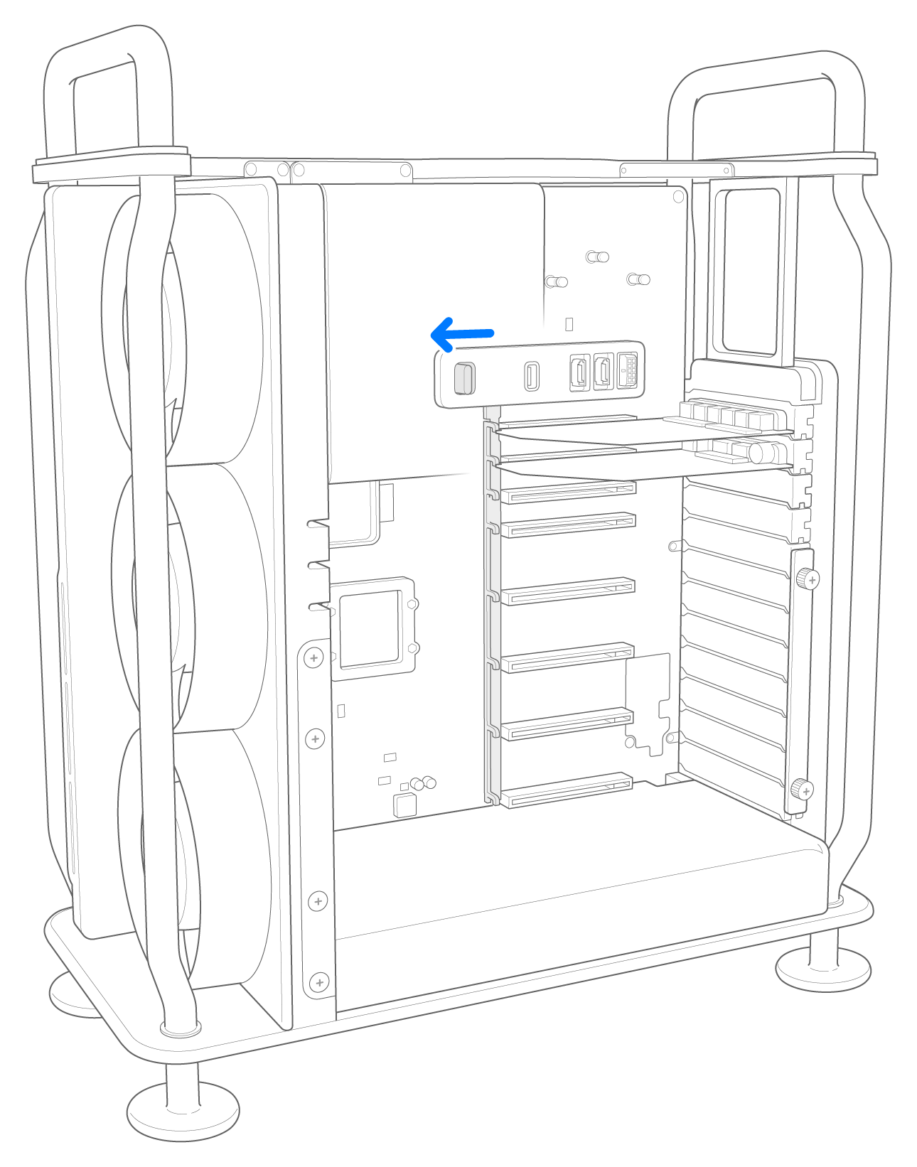 - Apple I/O カードの端を持ち、コンピュータのモデルに応じて以下のスロットからまっすぐ引き出します。