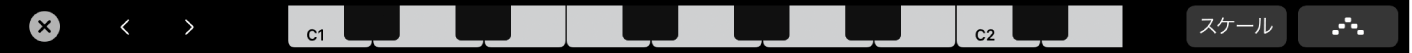 Touch Barキーボードのオクターブ範囲を調整するには、Touch Barキーボードの左にあるキーボードオクターブボタンのいずれかをタップします。