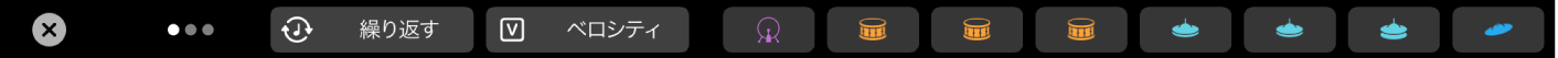 ドラムパッドボタンをタップすると、Touch Barを使って、Drummerまたはドラムキットパッチ付きソフトウェア音源トラックでドラムを演奏できるようになります。
