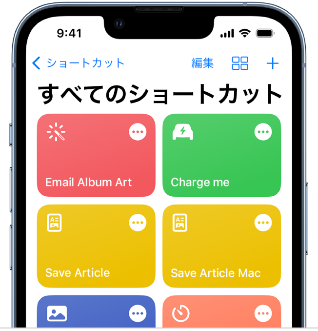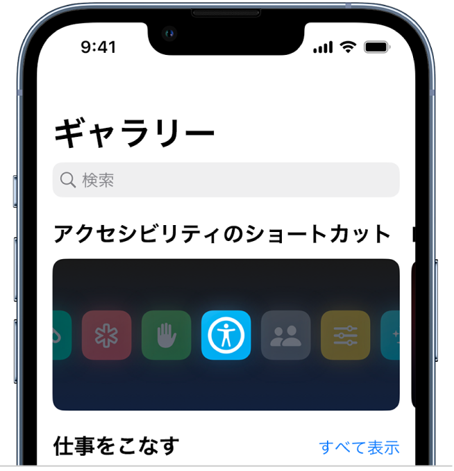 「ギャラリー」では、独創的なショートカットや便利なショートカットを厳選したコレクションを紹介しています。「ギャラリー」内を探検して、ショートカットでできることや、ショートカットの構築方法を調べてみてください。「ギャラリー」で好みのショートカットが見つかったら、タップするだけでショートカットコレクションに追加できます。また、必要に応じてカスタマイズすることもできます。