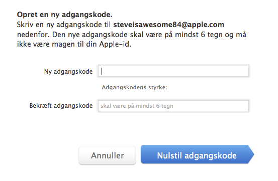 4) Hvis du følger hyperlinket i e-posten eller besvarer sikkerhedsspørgsmålet, får du mulighed for at nulstille din Apple-id-adgangskode.