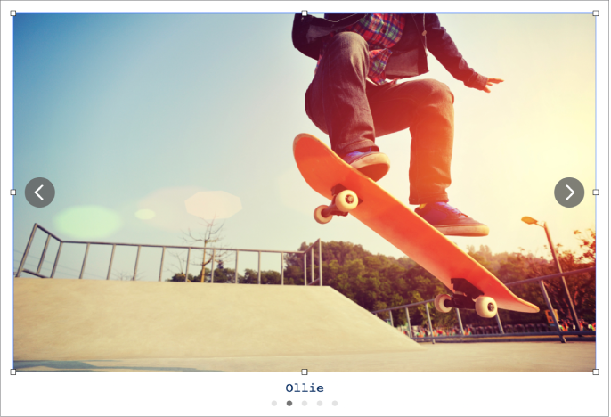 With an image gallery, you can view a collection of photos and SVG images in one place on a page, so only one shows at a time. You might want to do this, for example, if you plan to export your document in EPUB format and publish it to Apple Books, so readers can tap or click through the images as they would through a slideshow.