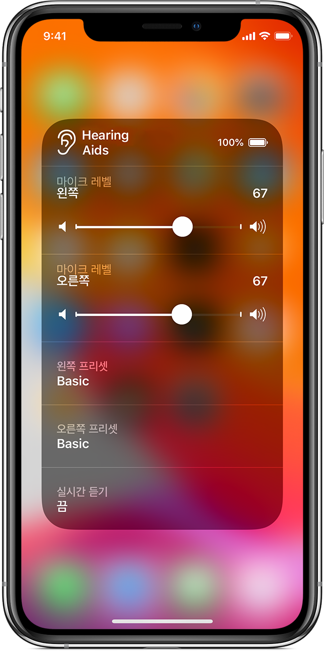 실시간 듣기는 Made for iPhone 보청기를 사용할 수 있는 iOS 기기에서 사용할 수 있습니다.