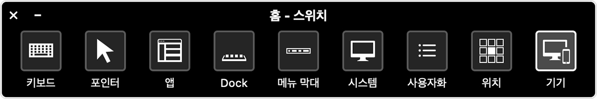 - 스위치를 사용하여 스위치 제어 메뉴를 탐색합니다. '기기'를 선택합니다.
