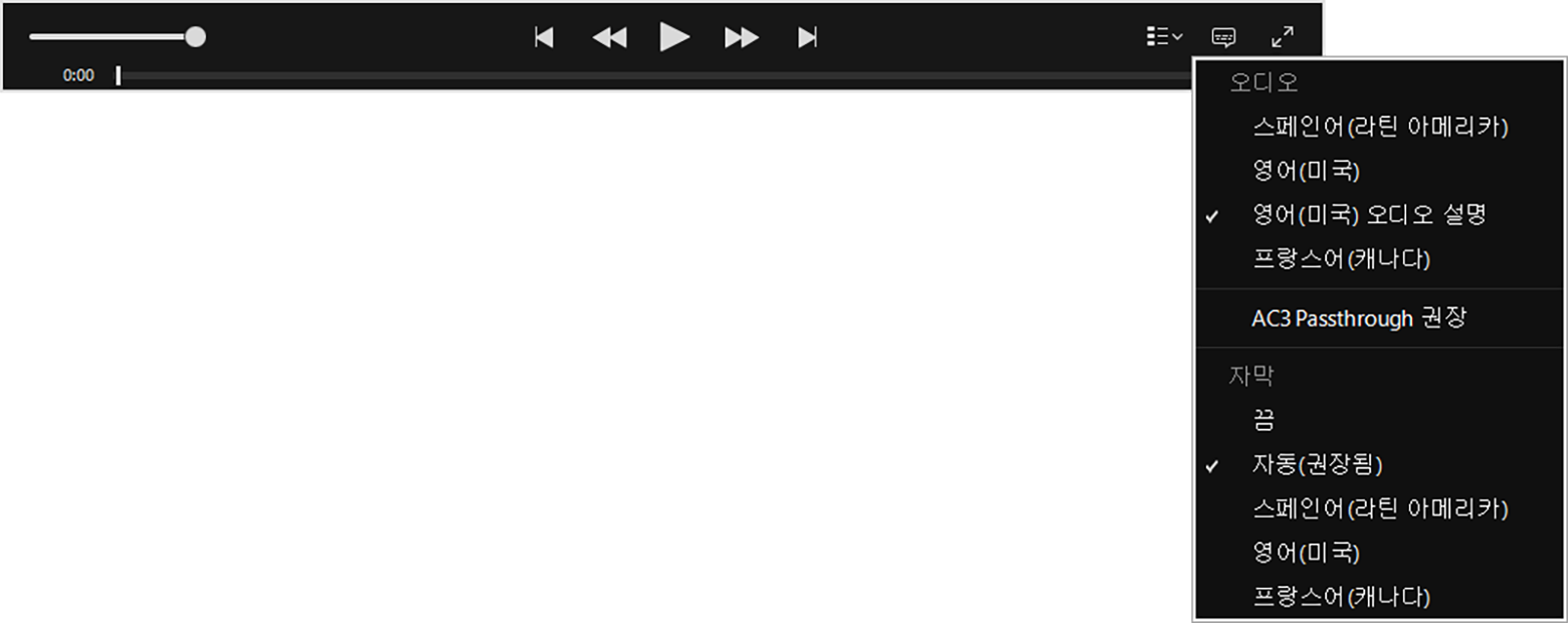 사용할 오디오 설명 트랙을 선택합니다.