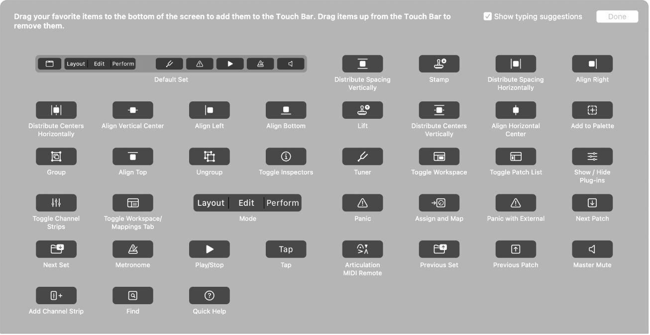 When you have finished customizing the Touch Bar, click Done in the Customize Touch Bar window.