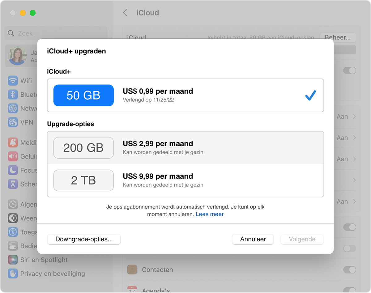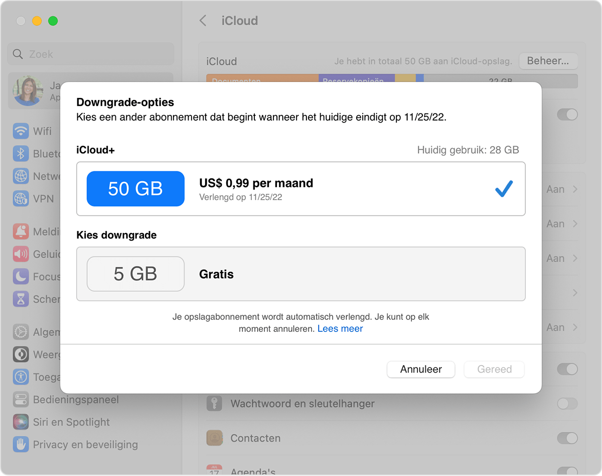 Uw iCloud+-abonnement downgraden of opzeggen op een Mac