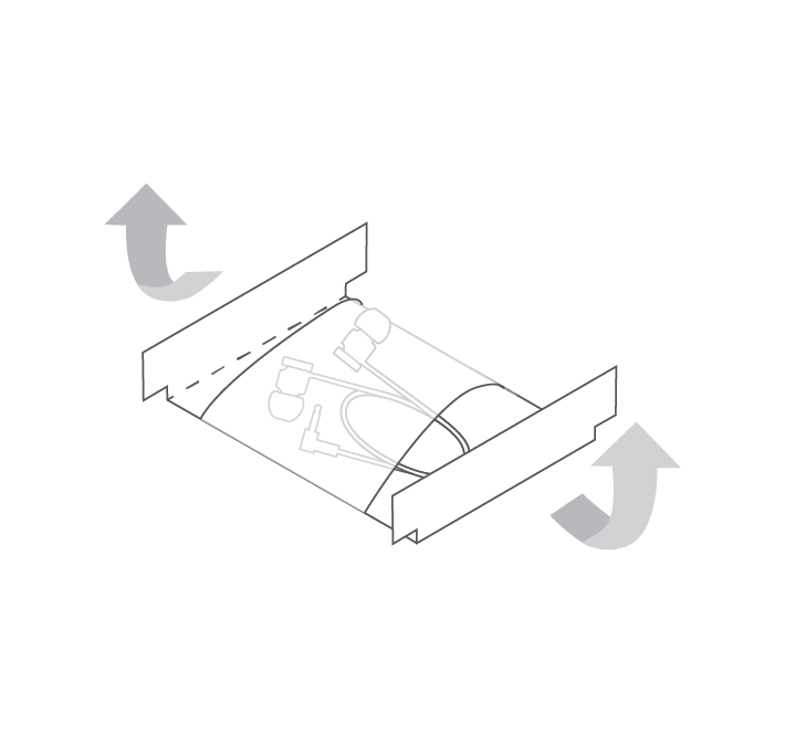- Schuif de zak onder de beschermfolie op de kartonnen binnenverpakking.