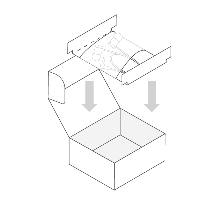 - Plaats de binnenverpakking in de doos. Sluit de doos.