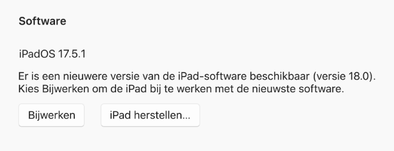 Opmerking: Mogelijk moet je eerst 'Update zoeken' selecteren om te controleren of er een update beschikbaar is. Als er een update beschikbaar is, verschijnt de knop 'Bijwerken'.