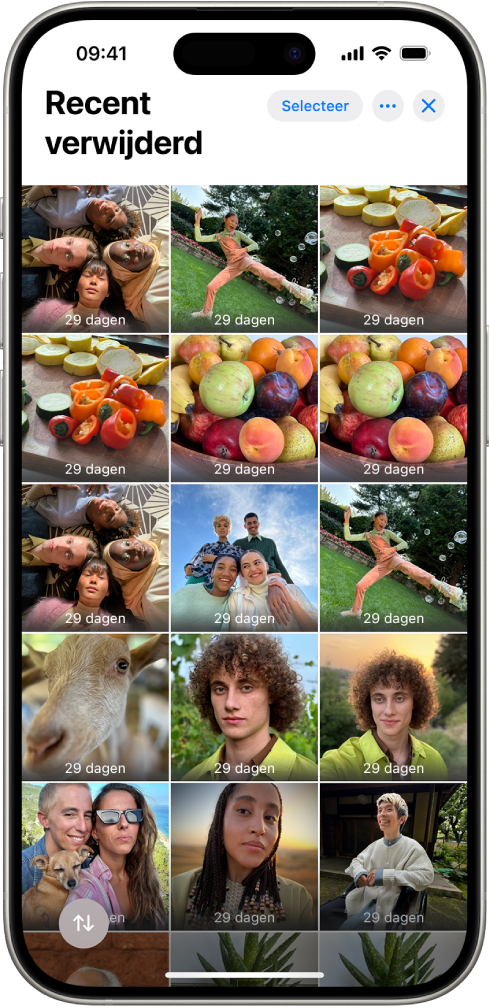 De foto's of video's die je uit de Foto's-app hebt verwijderd, worden automatisch 30 dagen bewaard in het album 'Recent verwijderd'. Als je per ongeluk een foto of video hebt verwijderd, kun je deze terugzetten in je Foto's-bibliotheek.