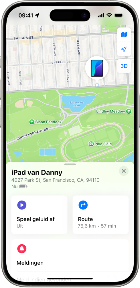 Als je 'Zoek mijn iPhone' hebt ingeschakeld, kun je de Zoek mijn-app op een ander Apple apparaat gebruiken om de locatie van je iPhone te zien. Je kunt zelfs een geluid afspelen op de zoekgeraakte iPhone om het apparaat gemakkelijker te vinden. (Zorg dat je op het andere Apple apparaat bij dezelfde Apple Account bent ingelogd.) Als je geen ander Apple apparaat hebt, ga je in een webbrowser naar www.icloud.com/find en log je in bij dezelfde Apple Account.