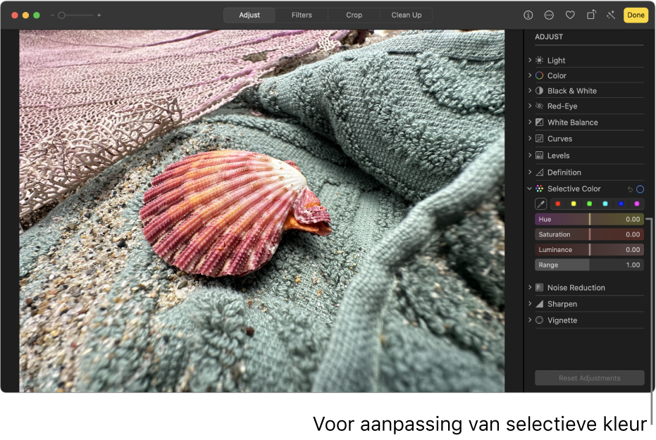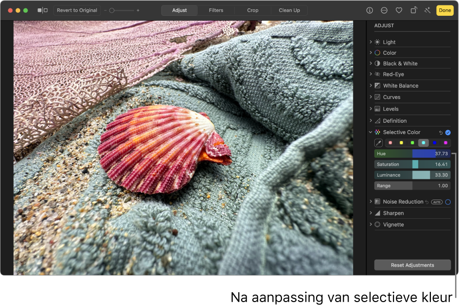 Specifieke kleuren aanpassen in een foto of video op de Mac