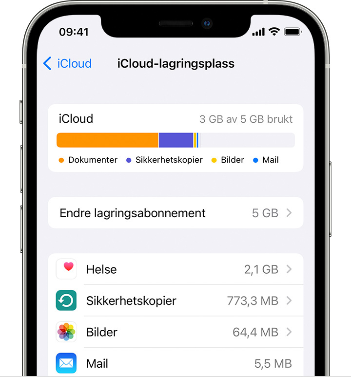 Du kan også se hvordan iCloud-bilder bruker iCloud-lagringsplassen din.