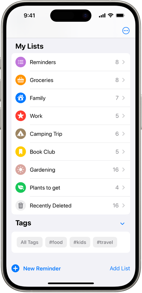 ਰਿਮਾਈਂਡਰ ਐਪ ਵਿੱਚ ਤੁਸੀਂ ਆਪਣੇ ਰਿਮਾਈਂਡਰਾਂ ਨੂੰ ਸ਼੍ਰੇਣੀਬੱਧ ਅਤੇ ਵਿਵਸਥਿਤ ਕਰਨ ਲਈ ਟੈਗਾਂ ਨੂੰ ਤੇਜ਼ੀ ਨਾਲ ਅਤੇ ਆਪਣੀ ਮਰਜ਼ੀ ਨਾਲ ਵਰਤ ਸਕਦੇ ਹੋ। ਤੁਸੀਂ ਰਿਮਾਈਂਡਰ ‘ਤੇ ਇੱਕ ਜਾਂ ਵਧੇਰੇ ਟੈਗ ਸ਼ਾਮਲ ਕਰ ਸਕਦੇ ਹੋ, ਜਿਵੇਂ ਕਿ #ਖ਼ਰੀਦਦਾਰੀ ਅਤੇ #ਕੰਮ, ਅਤੇ “ਟੈਗ ਬ੍ਰਾਊਜ਼ਰ” ਜਾਂ ”ਸਮਾਰਟ ਸੂਚੀਆਂ” ਦੀ ਵਰਤੋਂ ਕਰ ਕੇ ਸੂਚੀਆਂ ਵਿੱਚ ਆਪਣੇ ਰਿਮਾਈਂਡਰਾਂ ਨੂੰ ਆਸਾਨੀ ਨਾਲ ਖੋਜ ਅਤੇ ਫ਼ਿਲਟਰ ਕਰ ਸਕਦੇ ਹੋ।