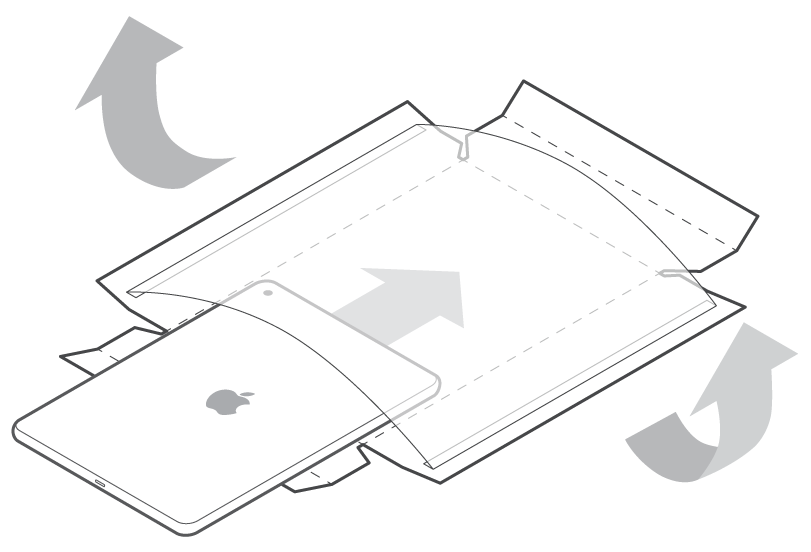 - Ułóż urządzenie na środku plastikowej osłony, ekranem w dół.