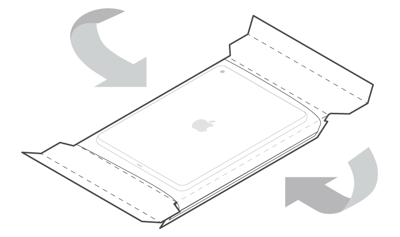 - Złóż boczne klapki z powrotem tak, aby zacisnąć plastikową osłonę wokół urządzenia.