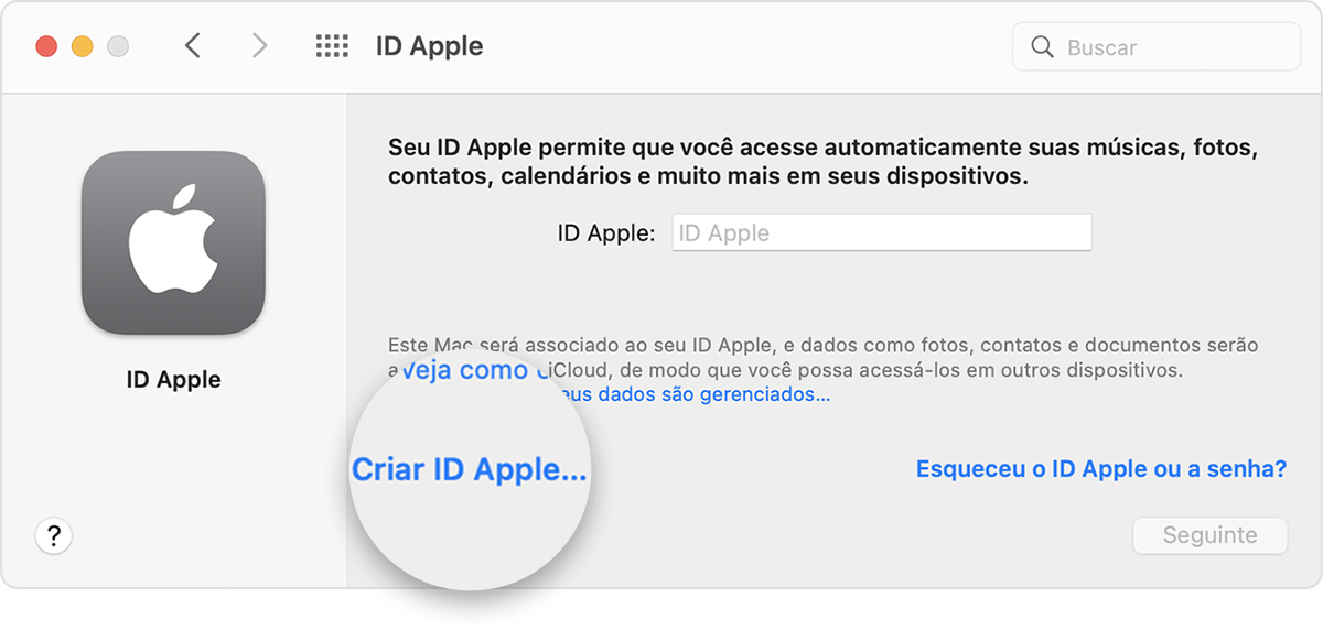 Criar uma Conta Apple em um dos dispositivos ou na Internet