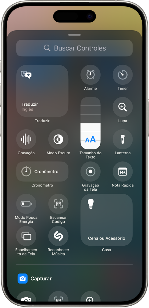 Você pode reordenar, adicionar e remover controles na Central de Controle.