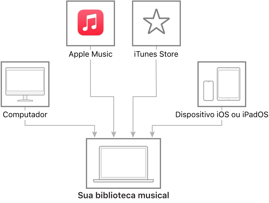 Caso não seja assinante do Apple Music a deseje adicionar suas músicas ou álbuns favoritos, você pode comprar e transferir músicas da iTunes Store. E caso já tenha comprado itens da iTunes Store, você pode baixá-los em computadores e dispositivos autorizados (até 10 no total).