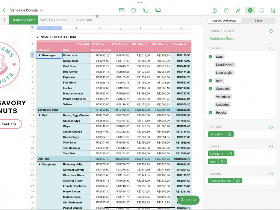 Use tabelas dinâmicas para resumir, agrupar e reorganizar dados rapidamente para explorar padrões e tendências com tabelas dinâmicas.
