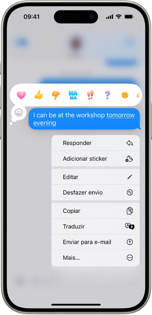 no iPhone.Toque e mantenha o dedo no balão da mensagem e, depois, toque em “Desfazer Enviar”.