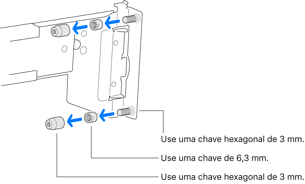 Nota: estas instruções são para a estação de trabalho em rack do Mac Pro com Apple Silicon. Se tem uma estação de trabalho em rack do Mac Pro baseado em Intel, consulte Instalar o Mac Pro num rack.