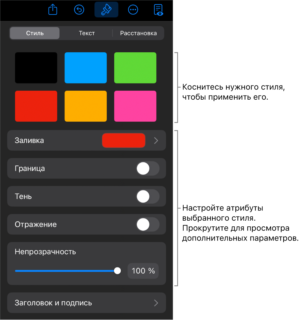 в панели инструментов, коснитесь «Стиль», затем коснитесь нужного стиля.