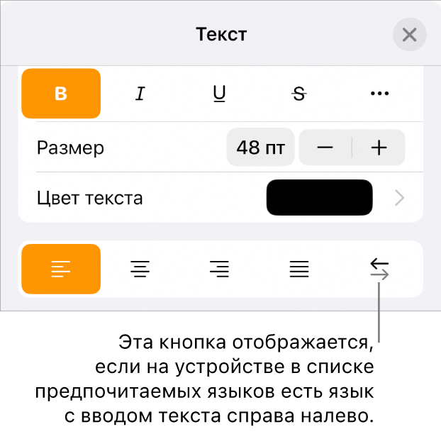 В Pages есть поддержка двунаправленного текста, поэтому в одном документе Вы можете вводить и редактировать текст слева направо (как в английском или китайском языке), а также справа налево (как в арабском языке или иврите). Использовать двунаправленный текст можно, только если в списке предпочитаемых языков устройства есть как минимум один язык со вводом текста справа налево. Подробнее см. в разделе Задание клавиатуры или другого источника ввода для другого языка.