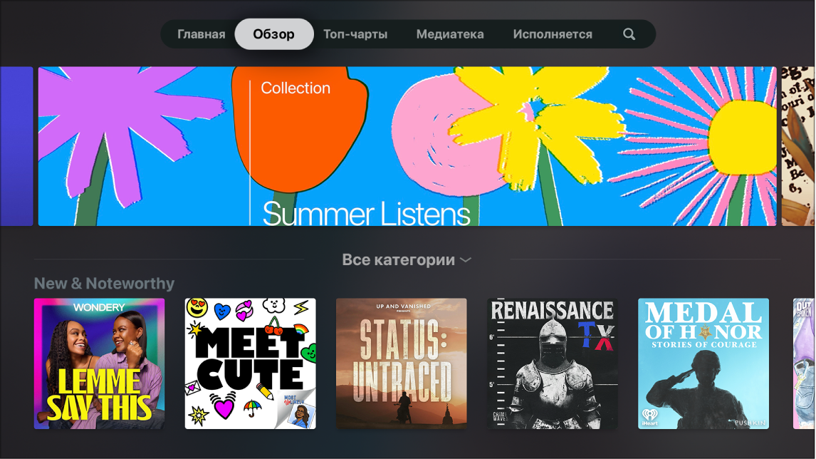 на Apple TV 4K Вы найдете все свои любимые подкасты, а также коллекции и рекомендации, подобранные специально для Вас.