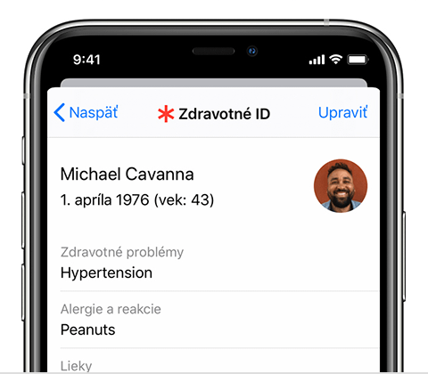 Vaše dôležité zdravotné informácie, napríklad alergie, zdravotný stav a tiesňové kontakty, si záchranári môžu pozrieť, aj keď máte zamknutý iPhone alebo hodinky Apple Watch. Uistite sa, že máte zadané presné a aktuálne informácie.