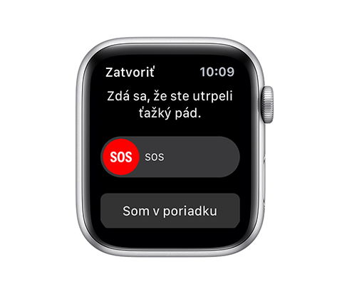 Hodinky Apple Watch Series 4 a novšie vám môžu privolať pomoc, keď utrpíte ťažký pád. Ak sa nebudete môcť pohnúť, hodinky Apple Watch automaticky zavolajú na tiesňovú linku a vašim tiesňovým kontaktom pošlú správu s vašou polohou.