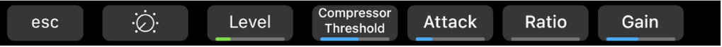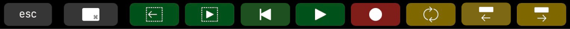 Dessa kortkommandon visas på Touch Bar på konfigurationsskärmen. Observera att den femte knappen ändras efter spårtyp.