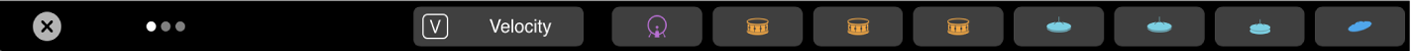 Om du trycker på trumplatteknappen kan du använda Touch Bar till att spela på trummor i ett Drummer-spår eller ett spår med programvaruinstrument och ett trumsettillägg.