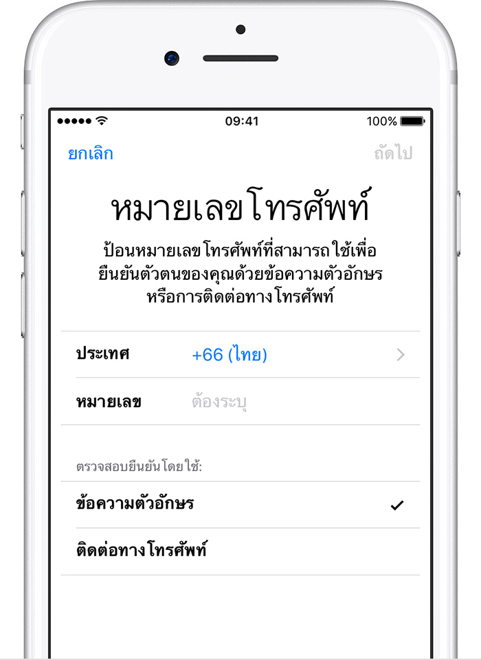 เมื่อคุณแตะถัดไป Apple จะส่งรหัสยืนยันไปยังหมายเลขโทรศัพท์ที่คุณให้ไว้