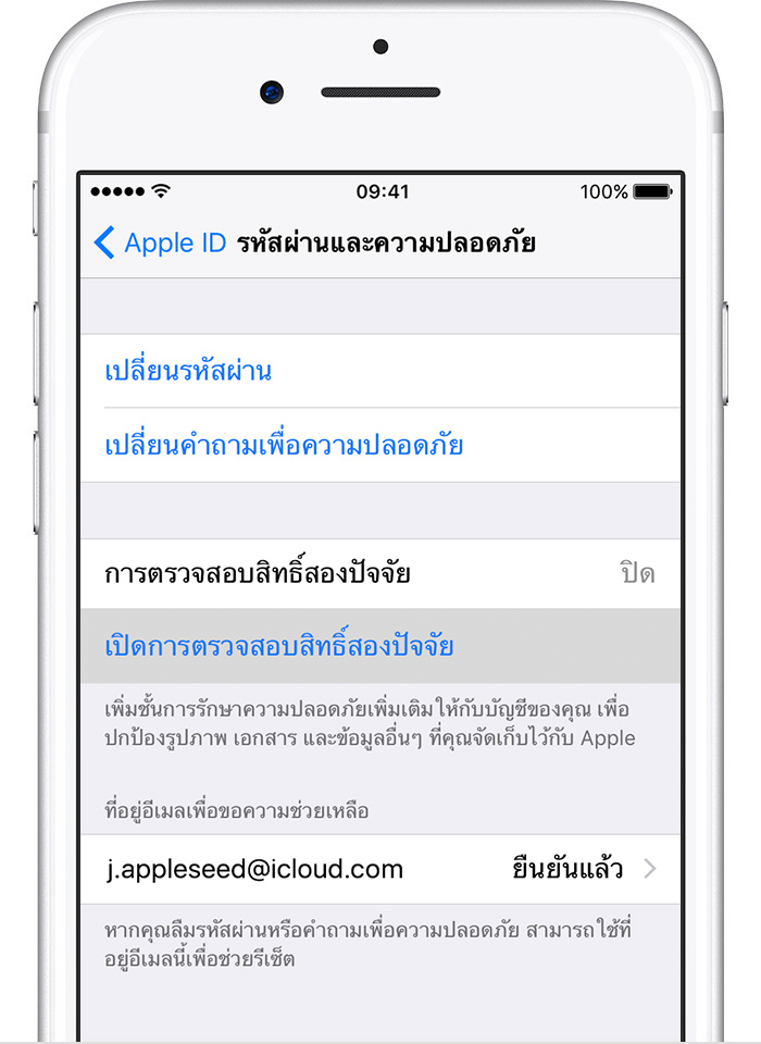 คุณสามารถทำตามขั้นตอนต่อไปนี้บน iPhone, iPad หรือ iPod touch ของคุณเพื่อเปิดการยืนยันตัวตนแบบสองส่วนประกอบ