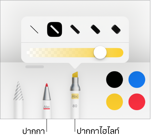 แตะปากกาเคมีหรือปากกาไฮไลท์ในแถบเครื่องมือที่ด้านล่างสุดของหน้าจอ (คุณอาจต้องปัดไปทางซ้ายบนแถบเครื่องมือเพื่อดู) จากนั้นเพิ่มเครื่องหมายของคุณ ในการเปลี่ยนลักษณะของเครื่องหมายของคุณ ให้แตะเครื่องมือคำอธิบายประกอบอีกครั้ง จากนั้นแตะปุ่มความกว้างของเส้น หรือลากแถบเลื่อนความทึบ