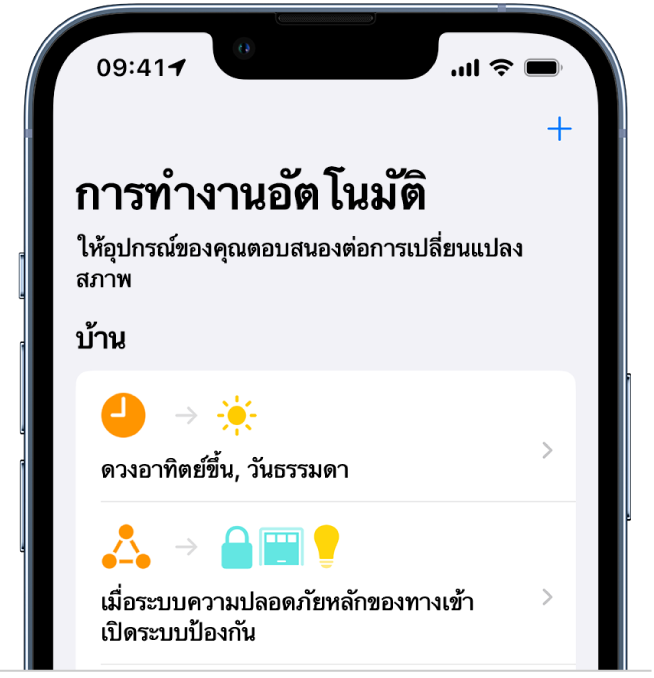 การทำงานอัตโนมัติเป็นคำสั่งลัดประเภทหนึ่งที่เปิดใช้งานด้วยเหตุการณ์ แทนที่จะเปิดใช้งานด้วยตัวเอง คุณสามารถใช้แอปคำสั่งลัดเพื่อตั้งค่าการทำงานอัตโนมัติส่วนบุคคลหรือการทำงานอัตโนมัติภายในบ้าน และกำหนดให้คำสั่งลัดอัตโนมัตินั้นทำงานเมื่อคุณมาถึงหรือออกเดินทาง เมื่อคุณเปลี่ยนการตั้งค่าบน iPhone ของคุณ เมื่อถึงเวลาของวัน และอื่นๆ อีกมากมายได้